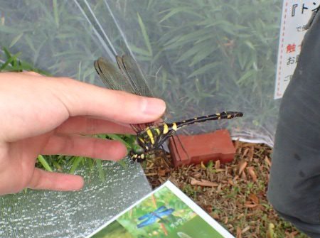 隅田川花火大会はすっかり出足をくじかれたようですが、公園にとっては恵みの雨。開園時には小雨模様でハラハラしましたが、午後には晴れ上がり、シオカラトンボ、ウスバキトンボ、チョウトンボ、ショウジョウトンボ、オオヤマトンボ、ギンヤンマ、アオヤンマ(捕獲数順)を捕獲することができました。
