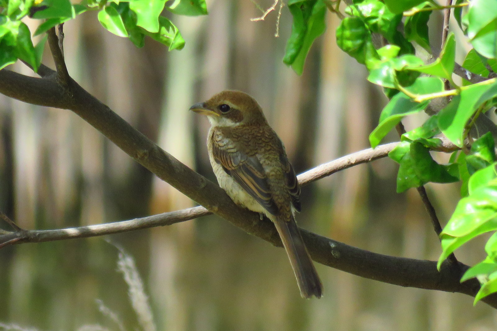 「東淡水池にモズの幼鳥がいる」と、お客様から教えていただき行ってみると、東観察広場の目の前にあるトウネズミモチの木に1羽止まっていました!