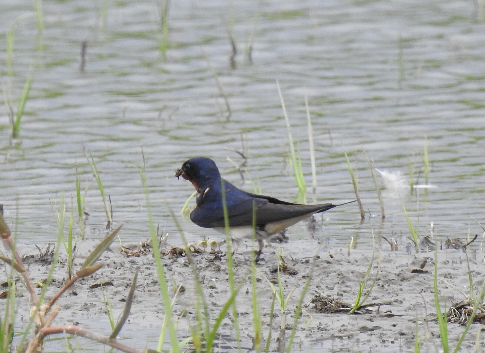 その近くでは、夏鳥のツバメが泥をくわえて飛び去りました。