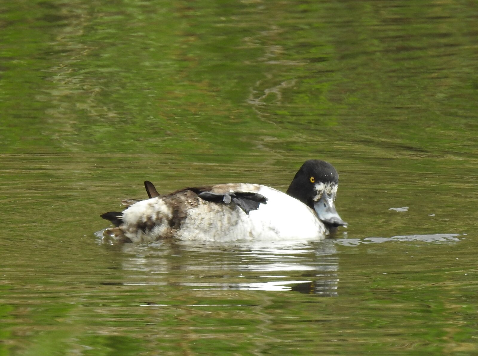 キンクロハジロはお腹を見せたセクシーポーズで、羽づくろいをしていました。