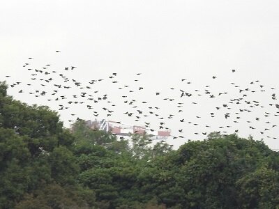 野鳥公園に渡ってきたヒヨドリと、渡りの途中のヒヨドリがいると思いますが、今朝は数百羽のヒヨドリが移動していました。