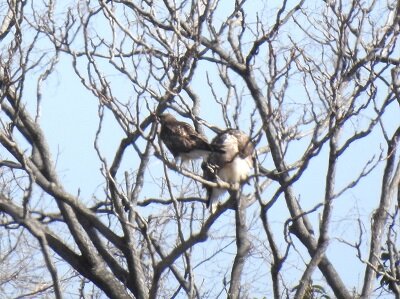 ネイチャーセンターから見える木に、ノスリが2羽並んでとまっていました。