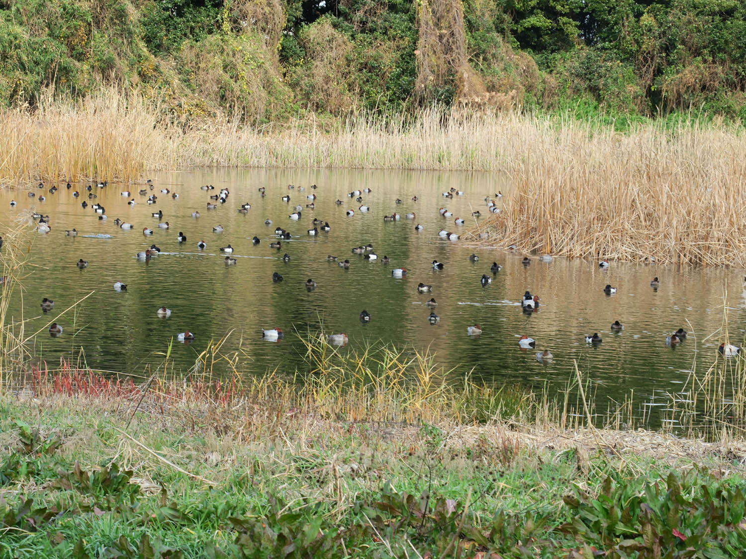 マガモ、ハシビロガモ、コガモ、ホシハジロ、キンクロハジロ、スズガモ、カイツブリ、カワウ、アオサギ、ダイサギ、コサギ、バン、オオバン、イソシギ、オオセグロカモメ、トビ、オオタカ、ノスリ、キジバト、カワセミ、コゲラ、モズ、ハシブトガラス、シジュウカラ、ヒヨドリ、ウグイス、メジロ、ムクドリ、シロハラ、ツグミ、ジョウビタキ、スズメ、ハクセキレイ、カワラヒワ、アオジ (35種)