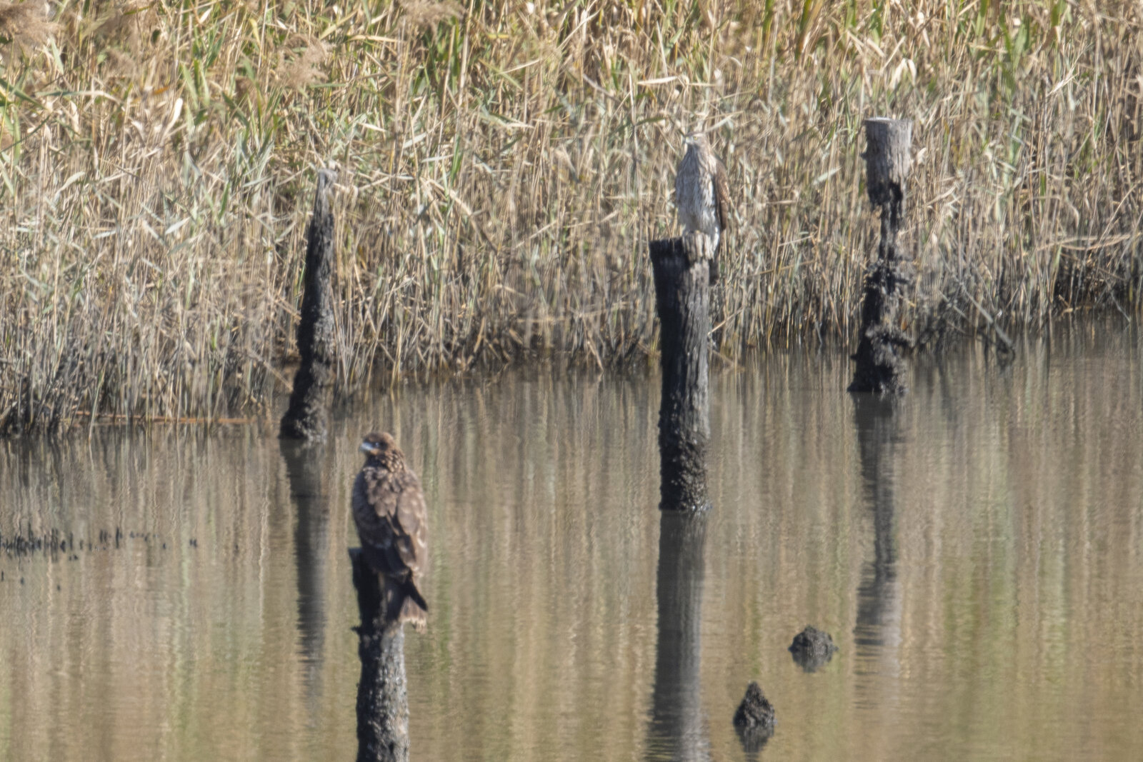 お昼頃、東淡水池の奥の木には、しばらくの間、ノスリがとまっていました。