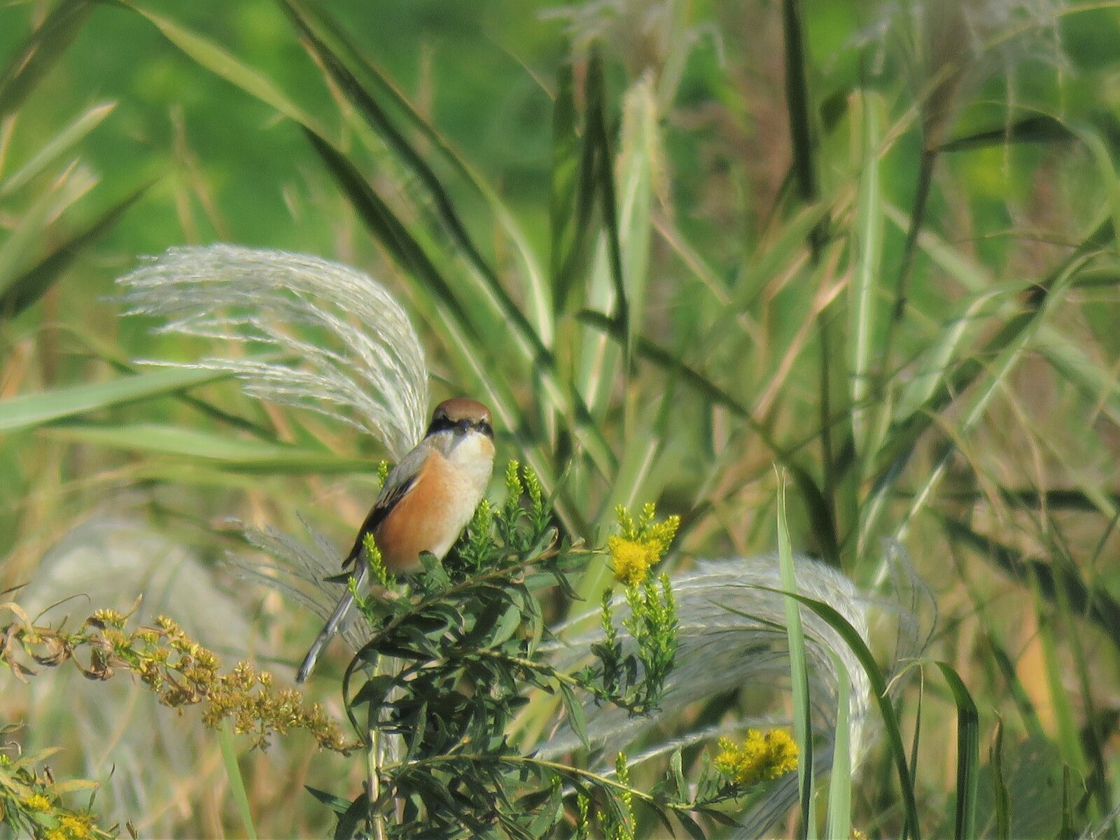 高鳴きをしていたモズ。撮影しようとカメラを向けると高鳴きが終わり、なにやら周りをキョロキョロ。何度か口を大きくあける仕草をした直後…ペリットを吐き出しました!