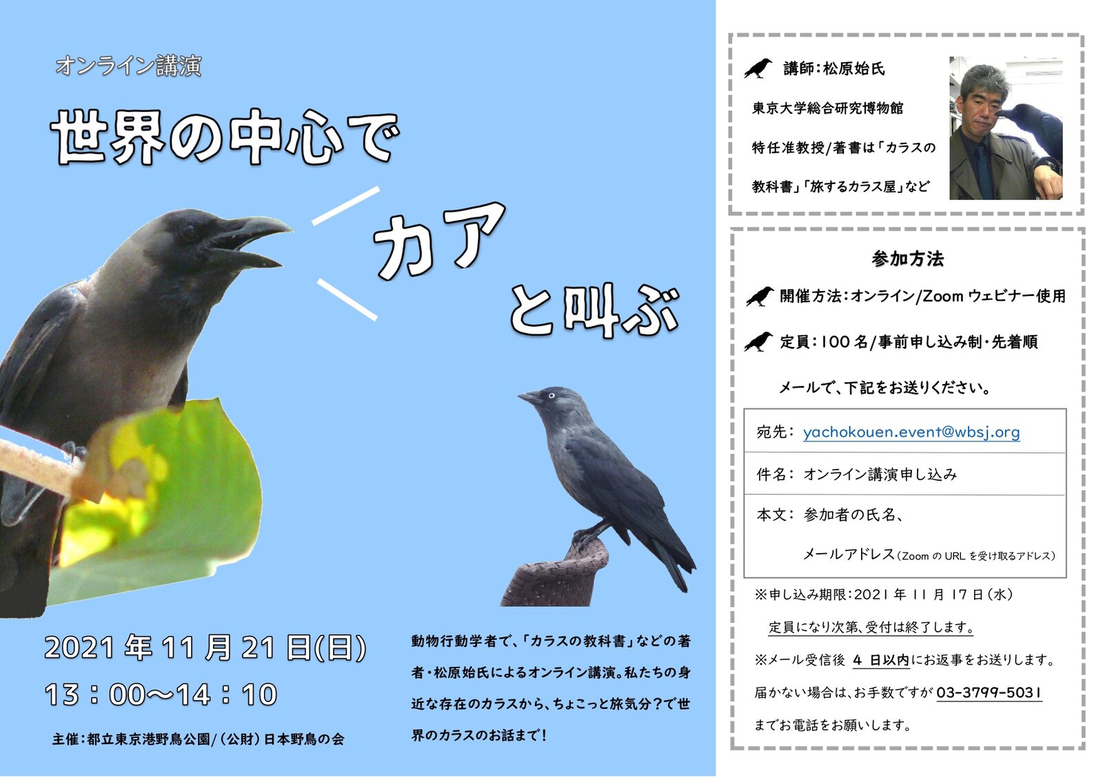 11月3日にレンジャーが確認した野鳥は以下のとおりです。