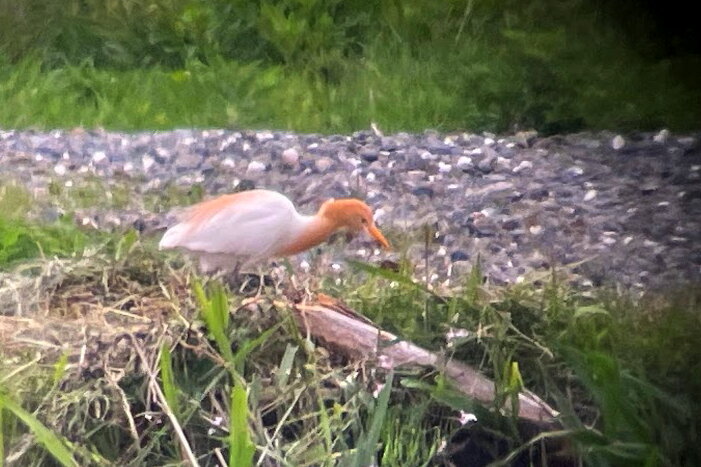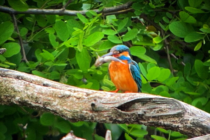東淡水池では、アオサギが大きな獲物を捕らえていました。