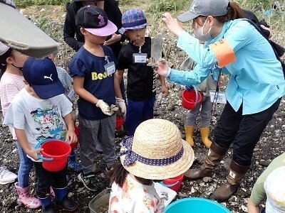 石の下にたくさんいたミミズハゼなど、たくさんの生きものに出会えました!
