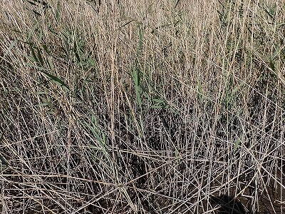 ほとんどの葉がなく、穂も出ていないヨシ原