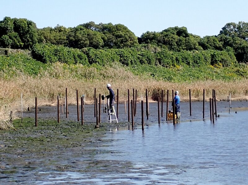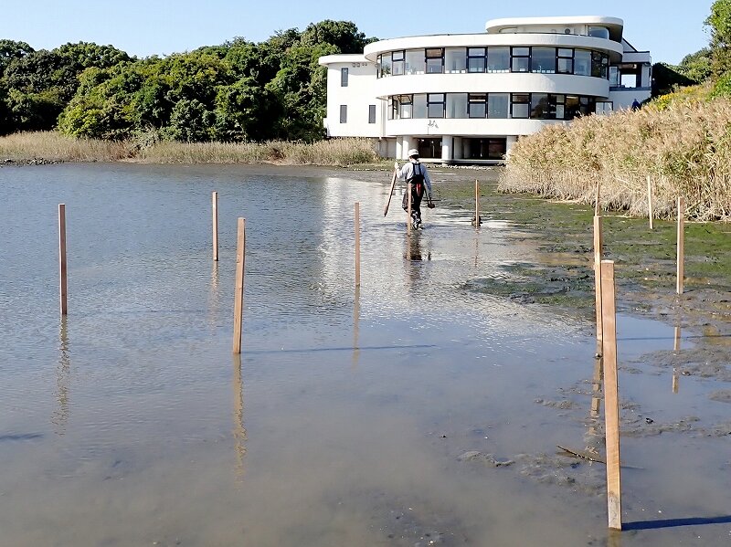 先日、潮入りの池に杭の打設をした日は、レンジャーも潮入りの池で整備作業を行いました。