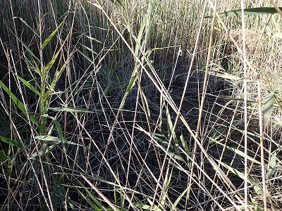 ヨシ原内部は、やせ細り、枯れ、触って砕けるようなヨシが多かったです