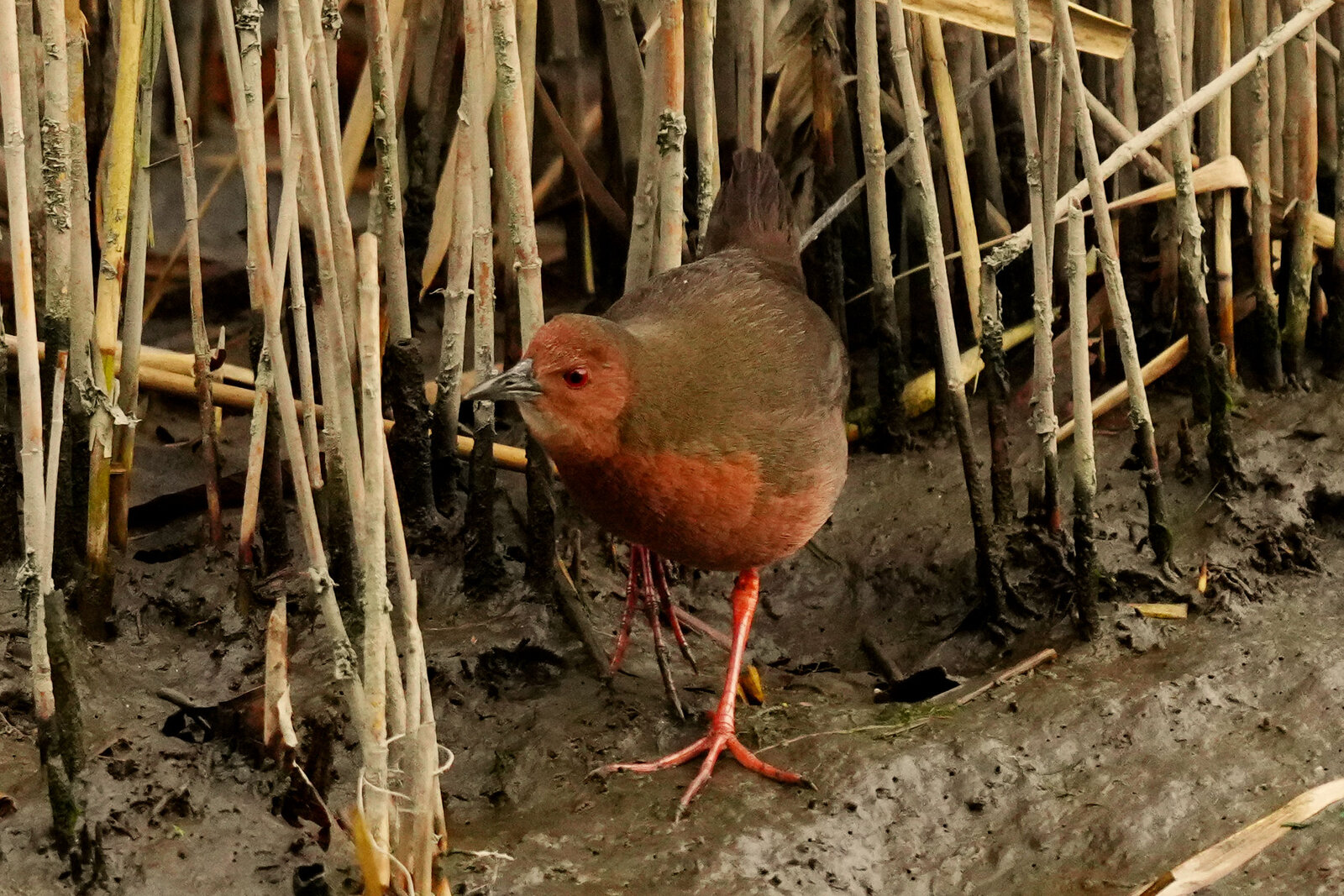 前浜干潟観察デッキの前には、ササゴイがいました。