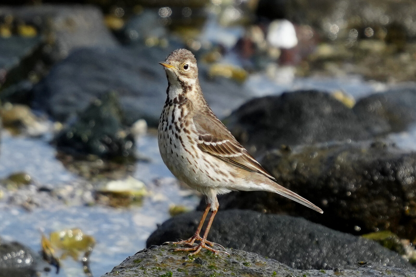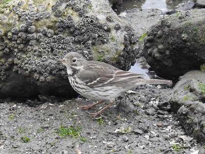 前浜干潟観察デッキからは、タヒバリが見られました。