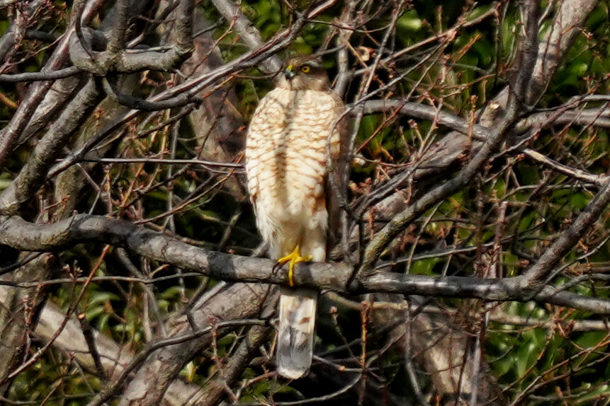 午前中から樹林にとまっており、夕方までずっと見られました。