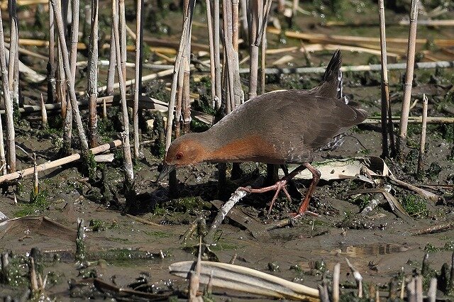 ヨシの茎から茎へと飛び移って、食べ物を探していました。