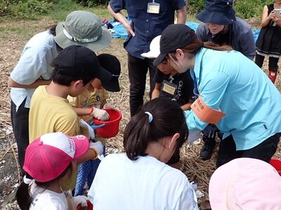 保護区の前浜干潟で、子どもたちと一緒に生きもの観察をしました。