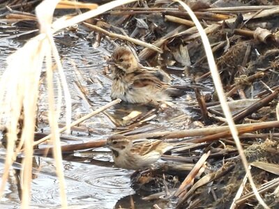 シジュウカラやメジロもやってきて、ぱりぱりとヨシの茎を剥ぐ音が聞こえていました。